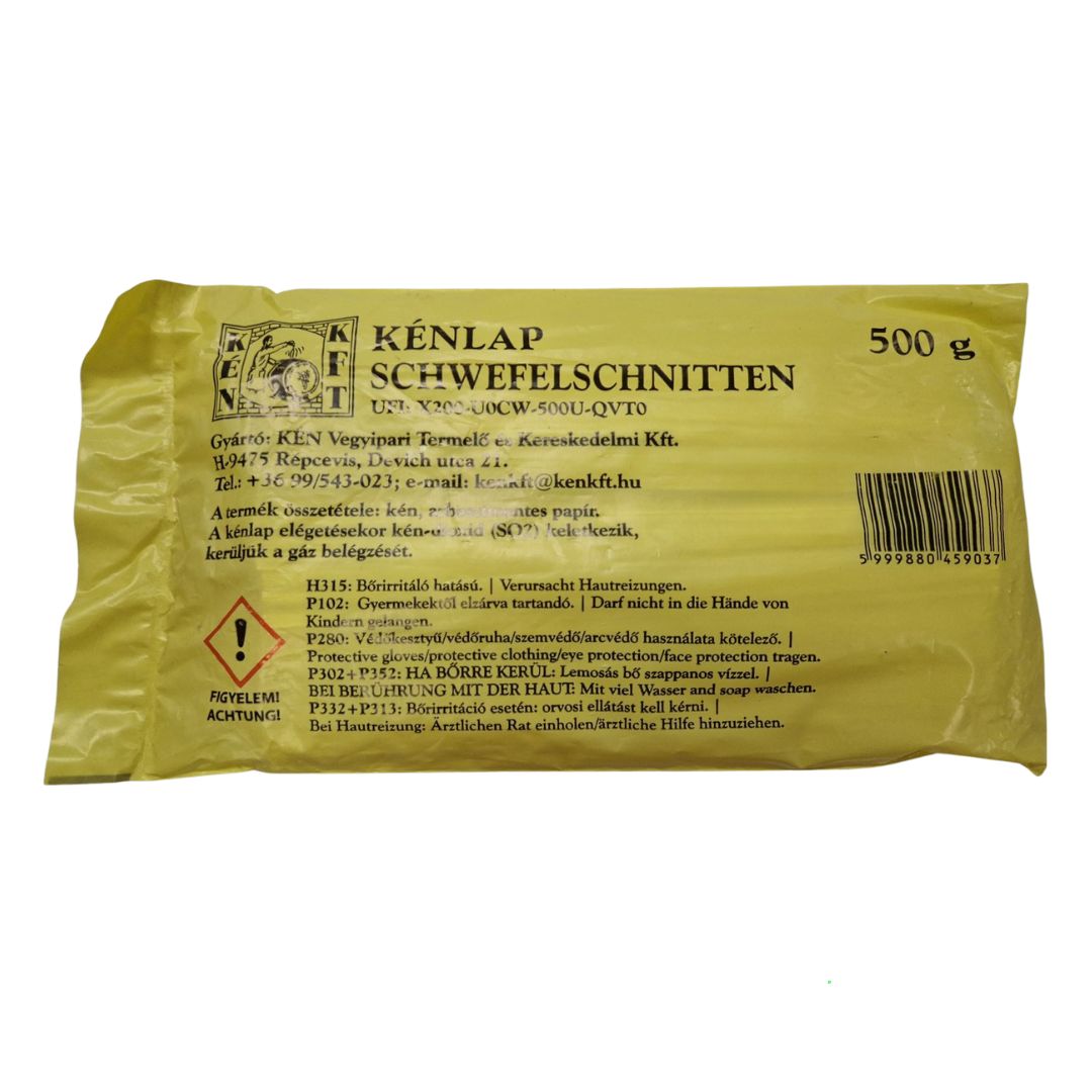 A borászati kénlap 500 g-os kiszerelésben tulajdonképpen nagyobb mennyiségű, ipari használatra szánt kénlap. A funkciója ugyanaz, mint a kisebb (pl. 12 db-os) csomagoknak: