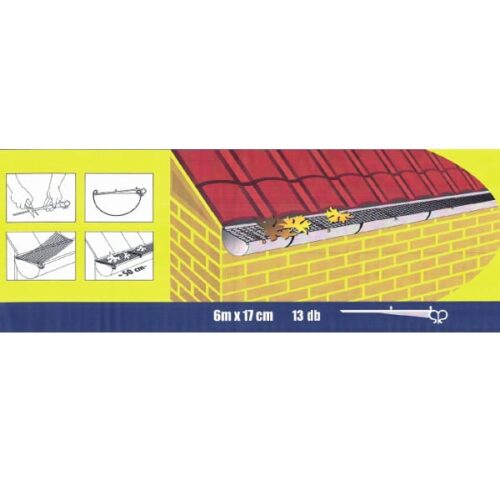 A csatorna vízlevezető zavartalan működése érdekében, tisztítsa meg a szennyeződésektől az ereszhálót, és a teljes ereszcsatornarendszert. A dobozban 15 DB tartó található, valamint egy 6M hosszú, 17 cm széles műanyag háló. Könnyen szerelhető, kellően merev háló. A 16db műanyag tartókat 40 cm-ként víszintesen kell elhelyezni a csatornán. Erre kell rögzíteni az ereszhálót a rajta lévő tüskék segítségével.