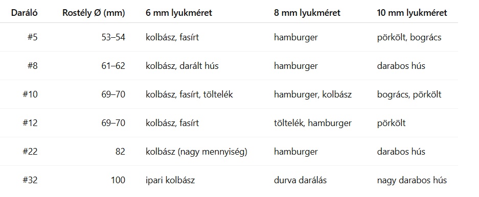 - Darálás finomságának szabályozása: A rostély határozza meg, hogy a daráló milyen finomságúra aprítja a húst. A rostélyon található lyukak mérete és száma befolyásolja a darált hús állagát. Kisebb lyukú rostéllyal finomabb darálékot, nagyobb lyukúval pedig durvább darálékot lehet készíteni.