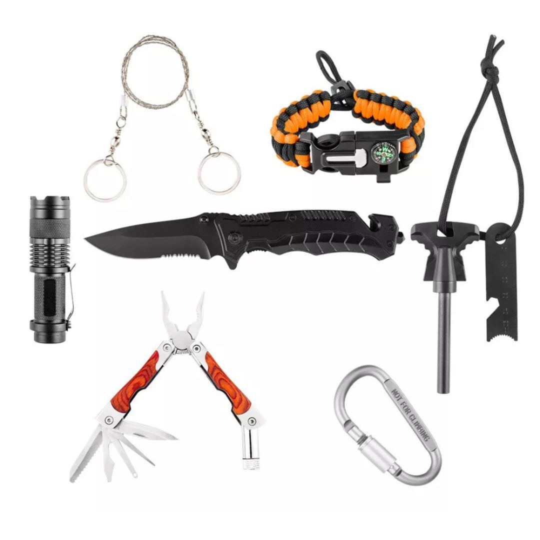 A 8 az 1-ben túlélő készlet egy dobozban a NEO-tól egy készlet, amely tartalmaz egy tűzkövet palacknyitóval, kést összecsukható pengével, zseblámpát, túlélő karkötőt (paracorddal, tűzkővel és iránytűvel), drótfűrészt, multiszerszámot, karabiner, műanyag doboz.